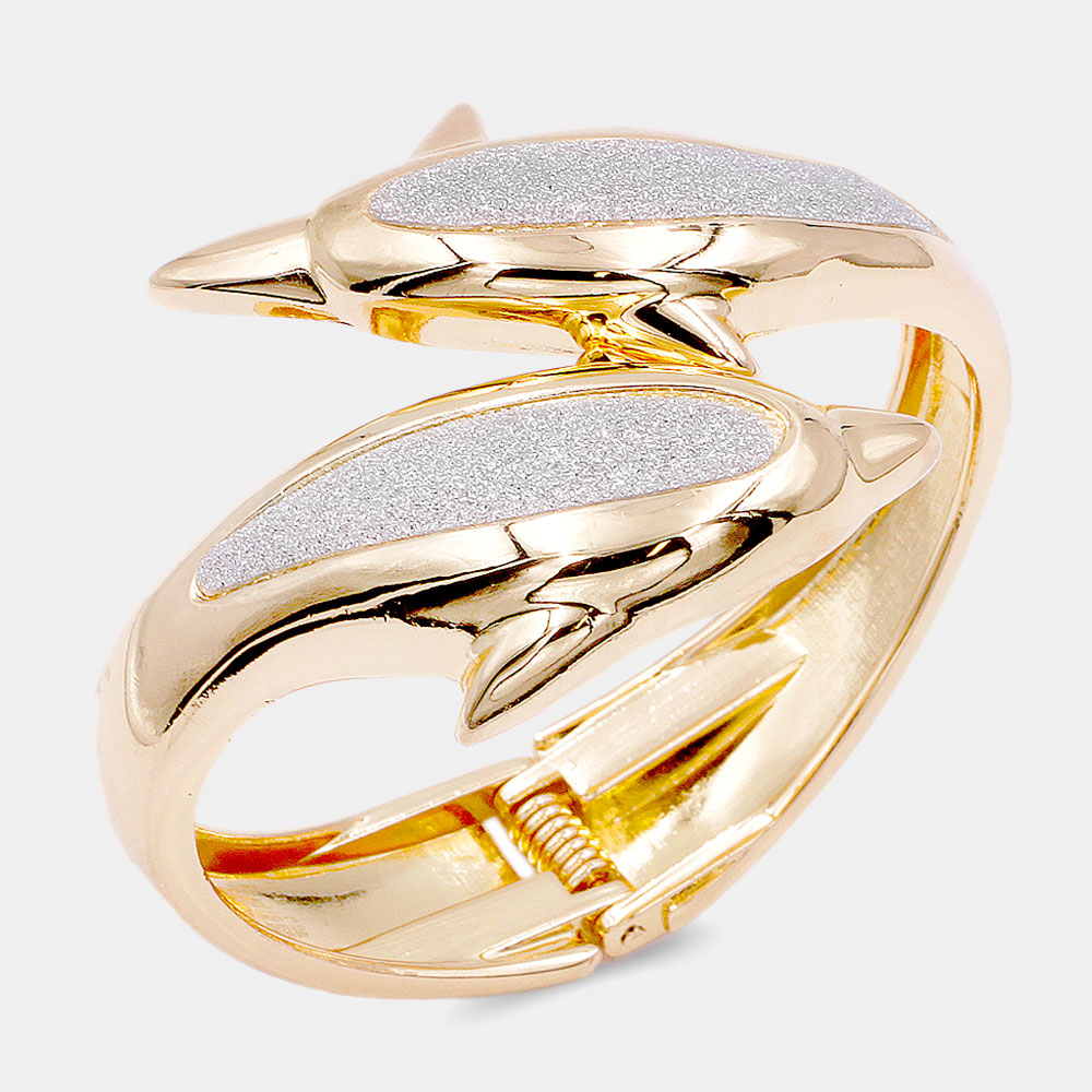 Bling Double Dolphin Hinged Bracelet