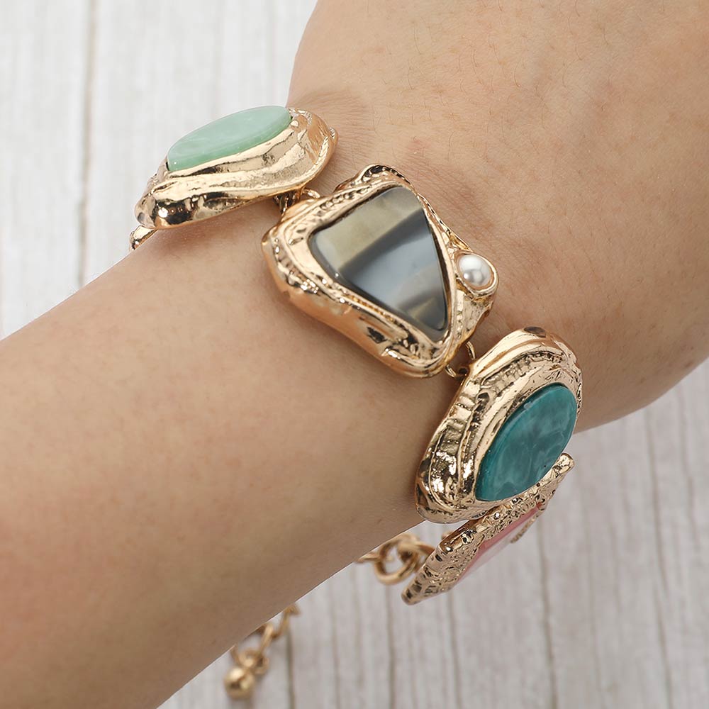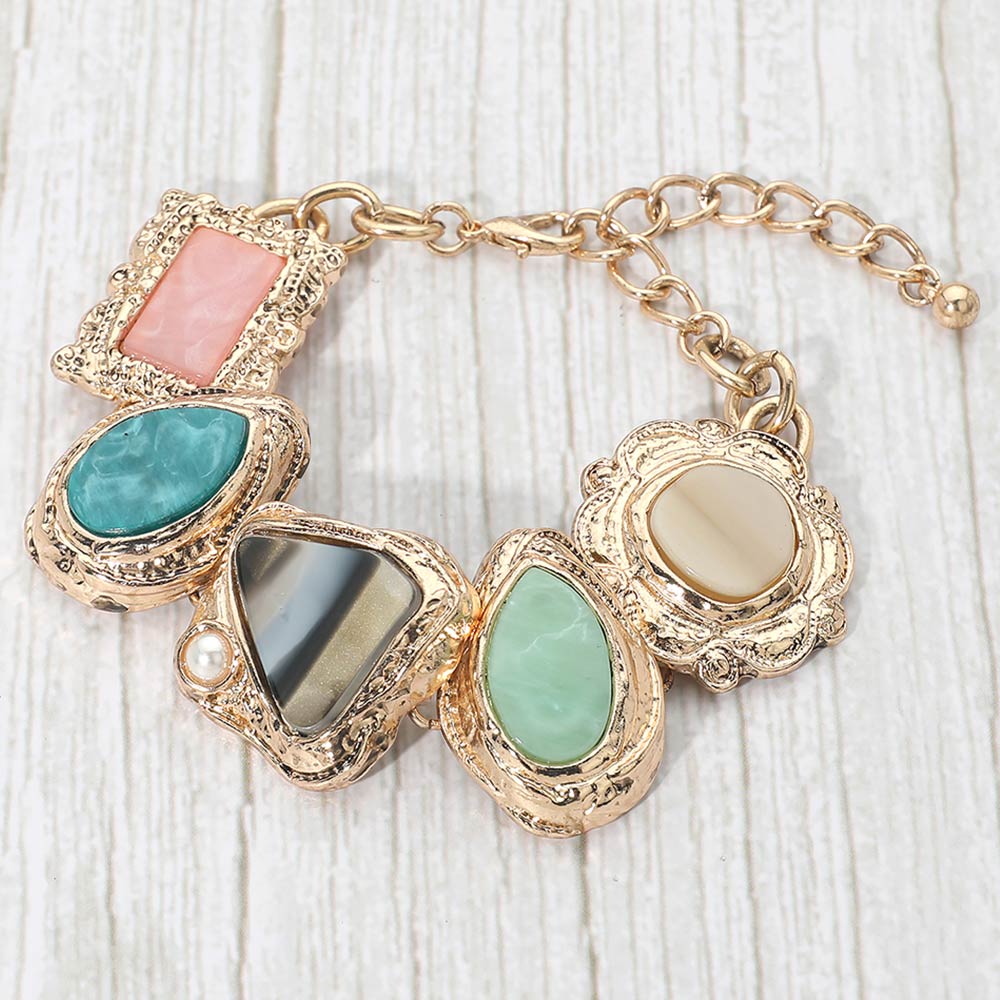 Bold Mixed Vintage Frame Stone Charm Link Statement Bracelet