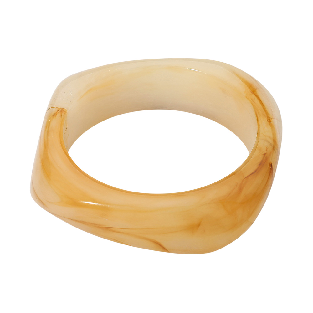 • This bold resin bangle bracelet showcases a sculpted square silhouette with a glossy marbled finish for a modern, artistic appeal. Its smooth surface and rich tones make it a standout accessory that adds a touch of sophistication and creativity to any casual or statement look.