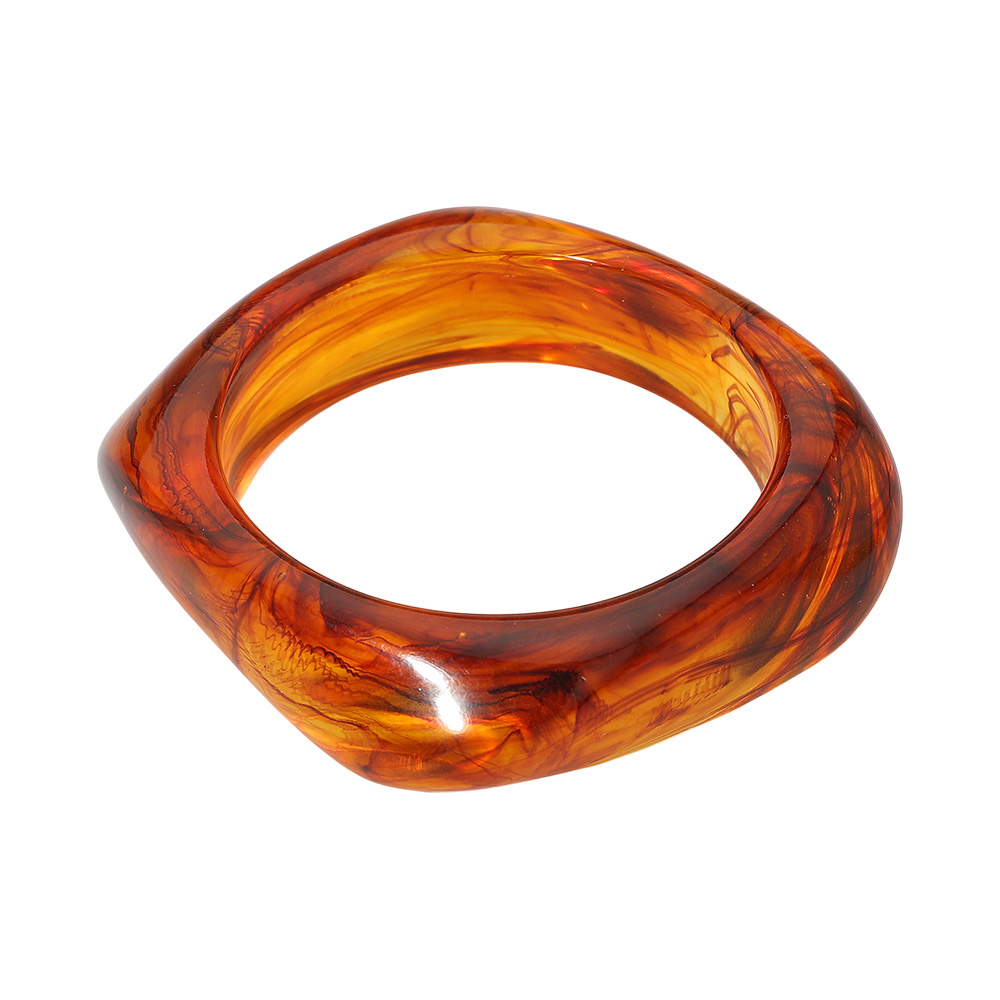 • This bold resin bangle bracelet showcases a sculpted square silhouette with a glossy marbled finish for a modern, artistic appeal. Its smooth surface and rich tones make it a standout accessory that adds a touch of sophistication and creativity to any casual or statement look.