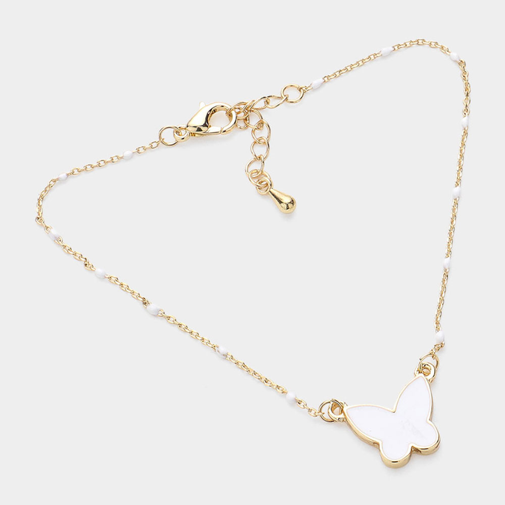 Enamel Butterfly Flower Cross Bow Heart Pearl Charm Station Necklace
