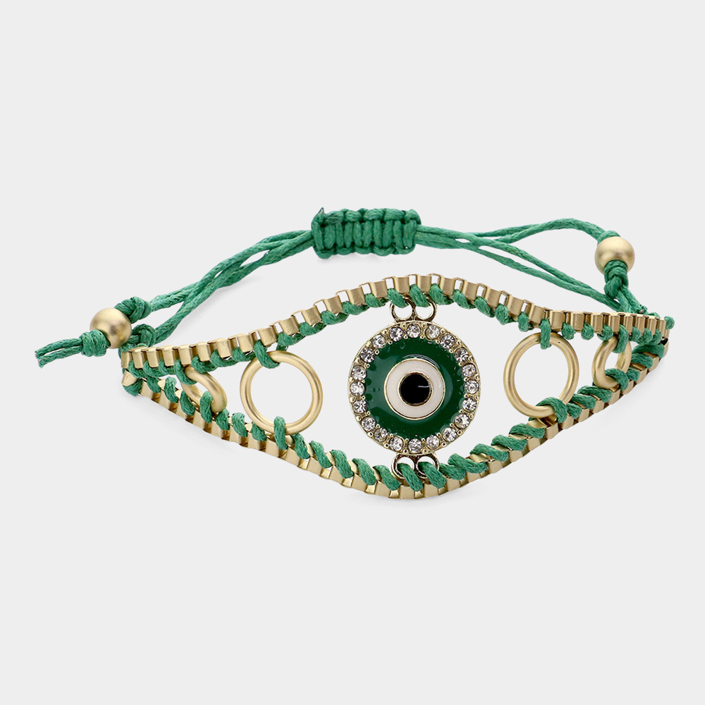 Enamel Evil Eye Adjustable Pull Tie Cinch Bracelet