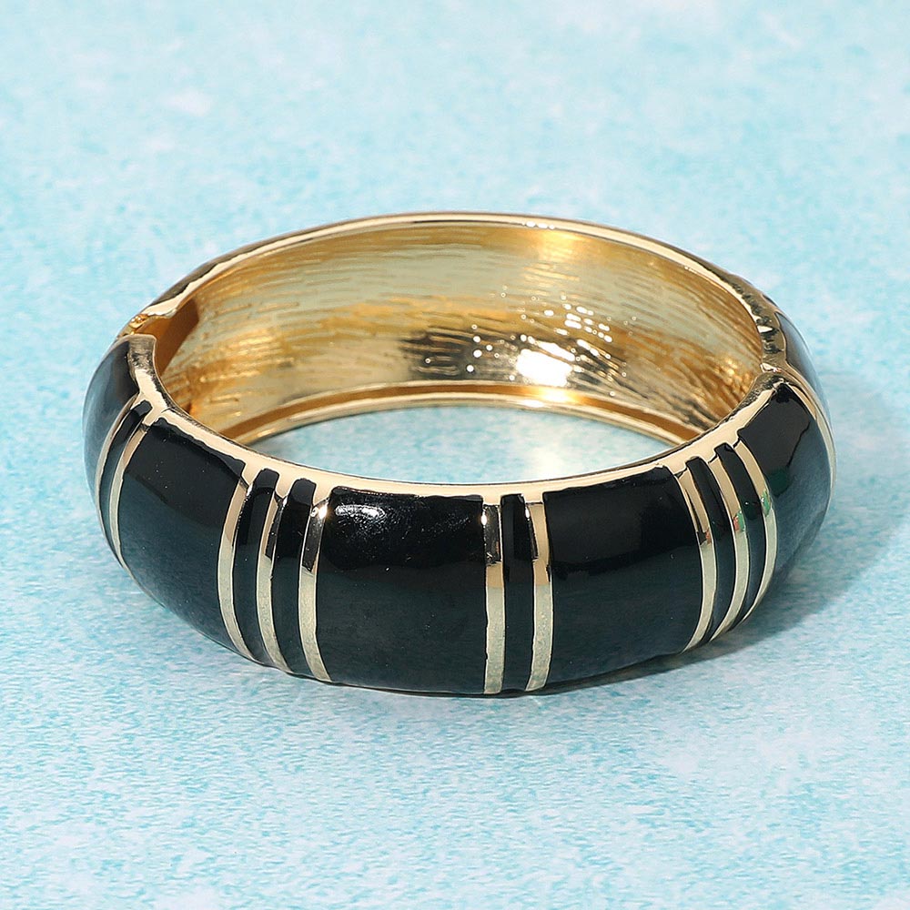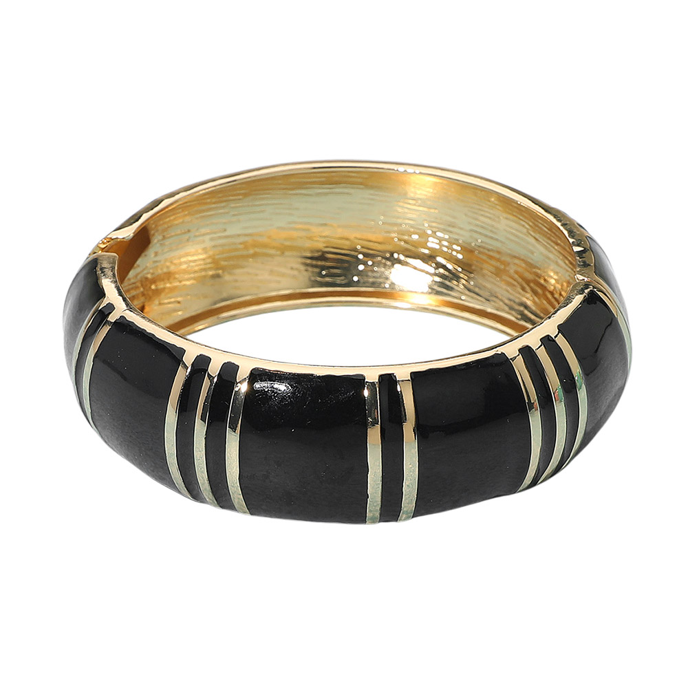 Details • Size : 0.9" H, 2.5" D • Hinged Closure • Chic dome-shaped bracelet featuring sleek striped accents and a smooth polished finish. Designed with a secure hinged closure for comfort and ease, this bold fashion accessory adds modern sophistication and a refined touch to any outfit or occasion. • Lead and Nickel Compliant