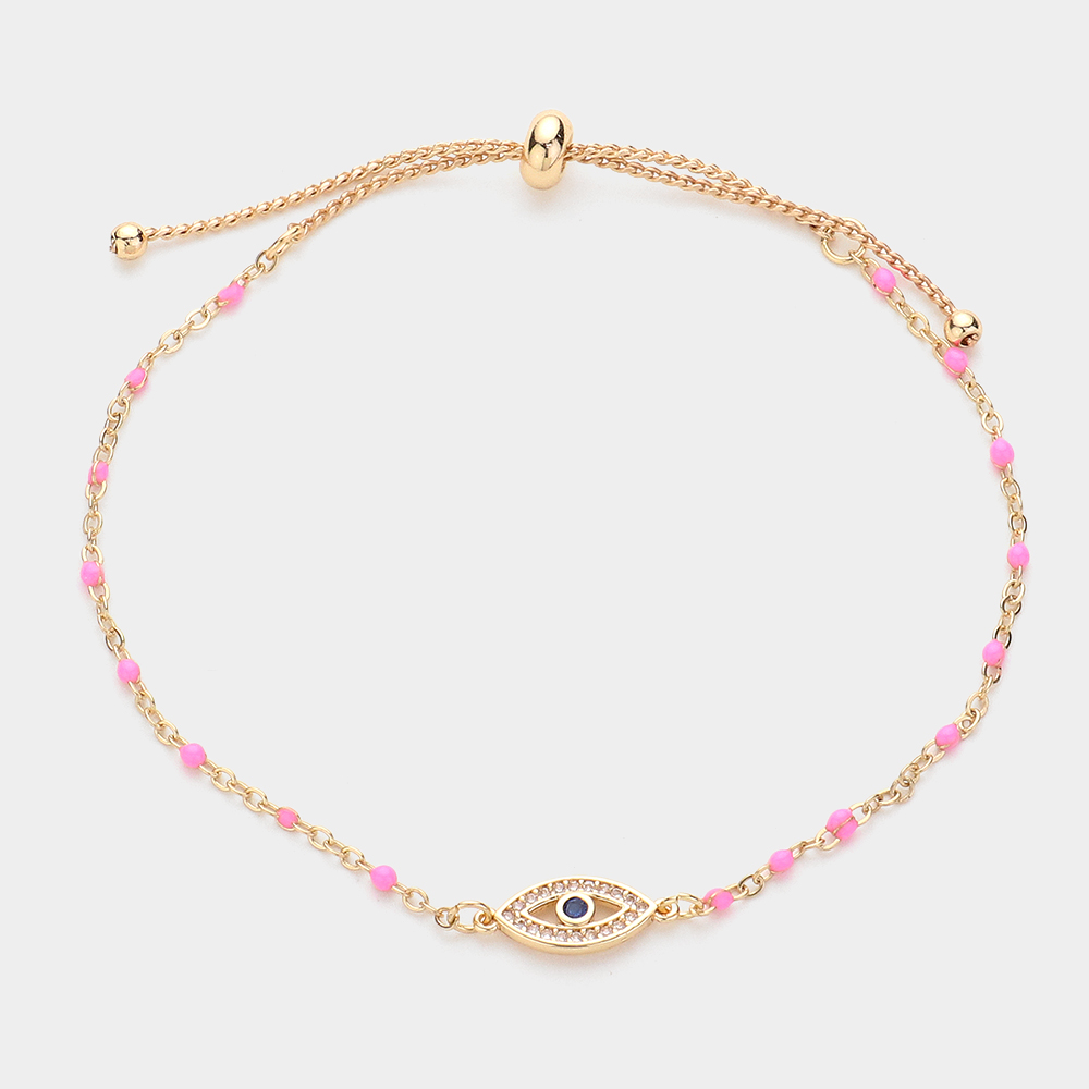 Evil Eye Pointed Beads Station Pull Tie Bracelet