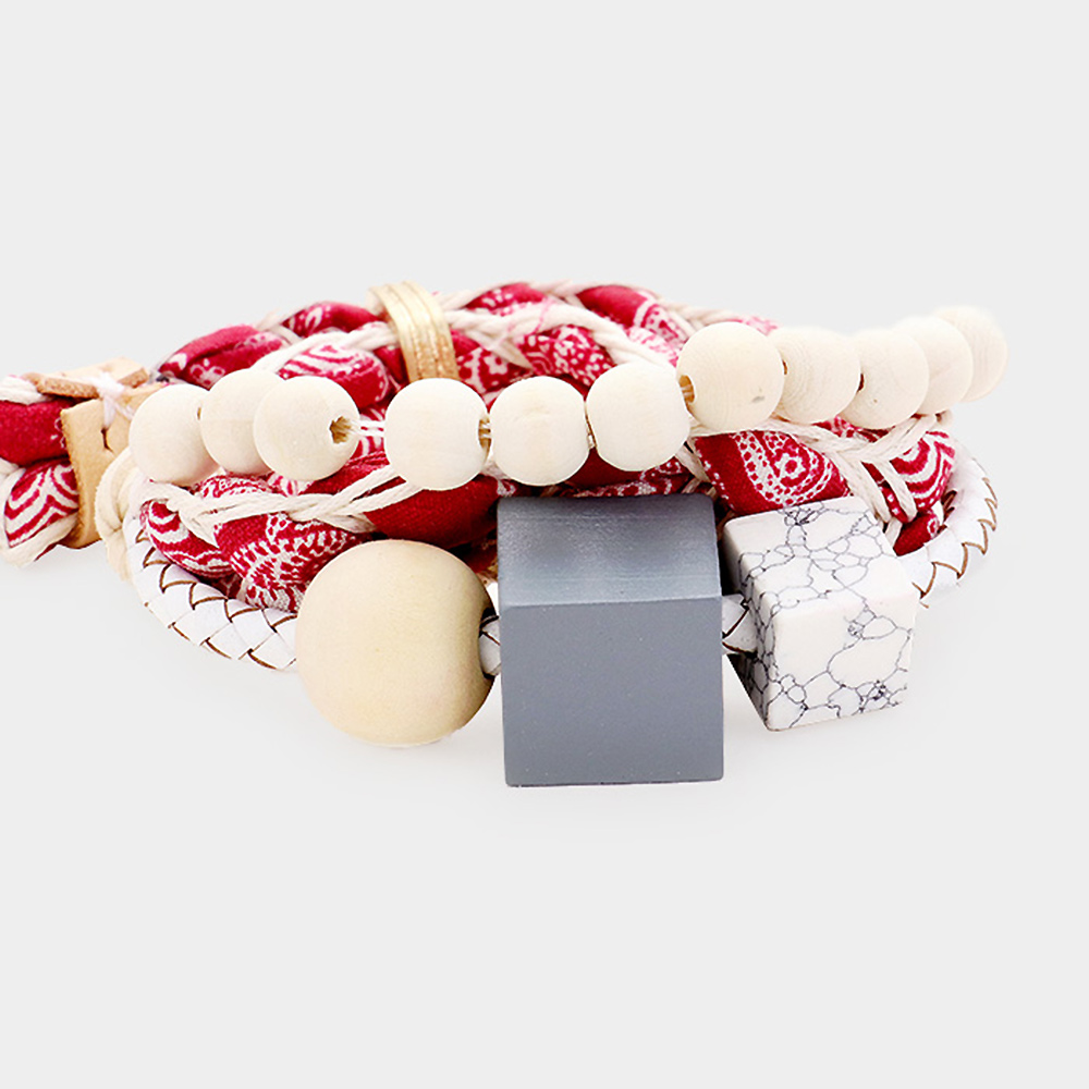 Fabric Braid Wood Cube Adjustable Bracelet