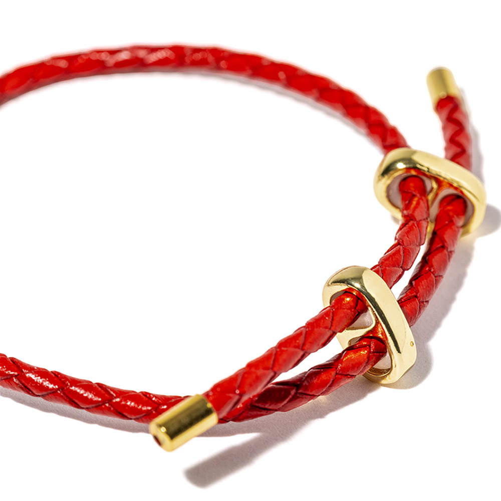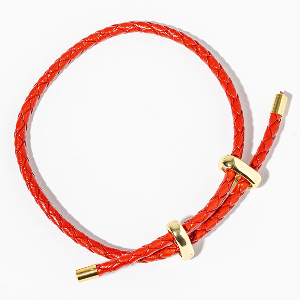 Faux Leather Braided Gold Dipped Tip Adjustable Bracelet