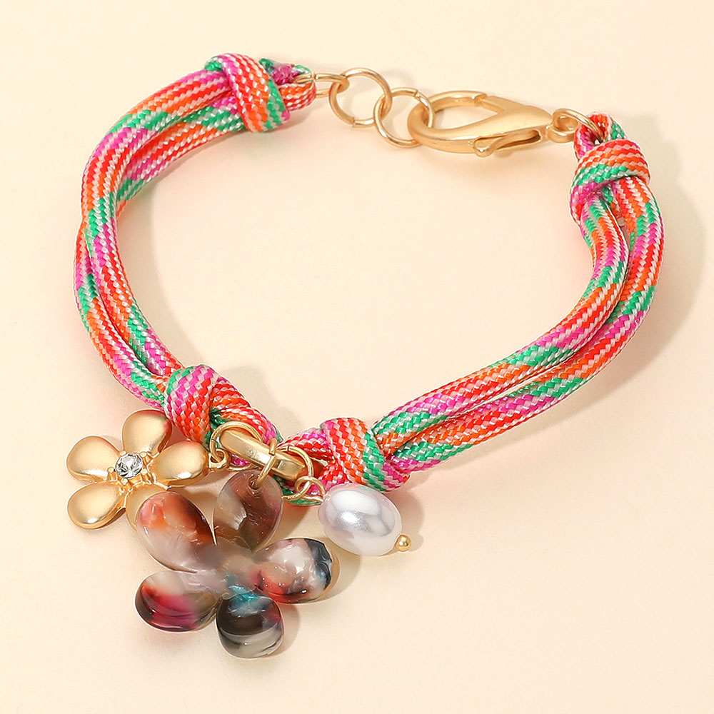 Details • Size : 0.4" H, 7.5" + 0.75" L • Charm Size : 1.5" L • Lobster Clasp Closure • This floral charm rope bracelet adds a lively touch to any look, featuring a multitone band accented with eye-catching charms. Its playful mix of textures creates a standout accessory that layers effortlessly and brings a fresh, expressive style to everyday outfits. • Lead and Nickel Compliant