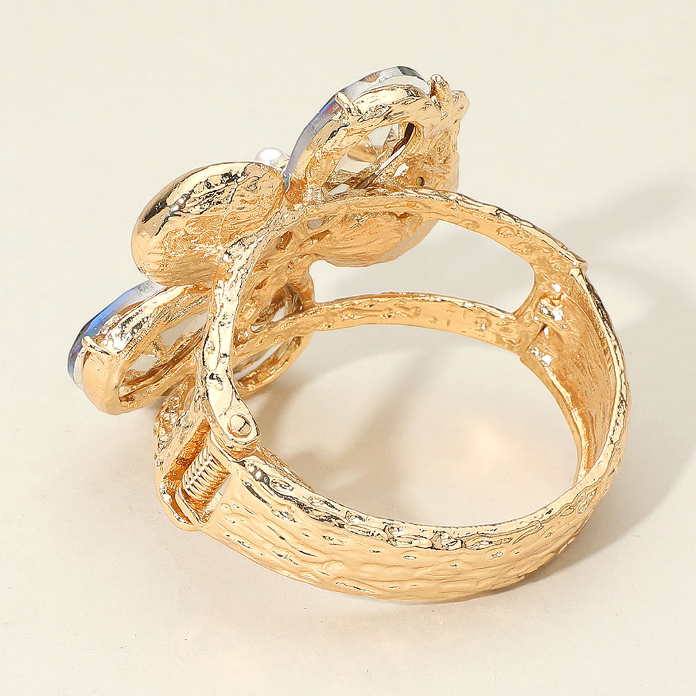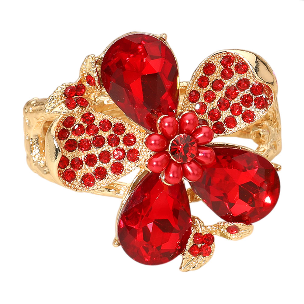 Details • Size : 2.4" H, 2.4" D • Hinged Closure • Bold floral statement ring featuring layered petal design with faceted accents and dimensional detailing. Created to deliver standout impact for everyday styling, special occasions, and gift-ready assortments. A trend-forward accessory ideal for boutiques seeking eye-catching rings with elegant shine and strong visual appeal. • Lead and Nickel Compliant