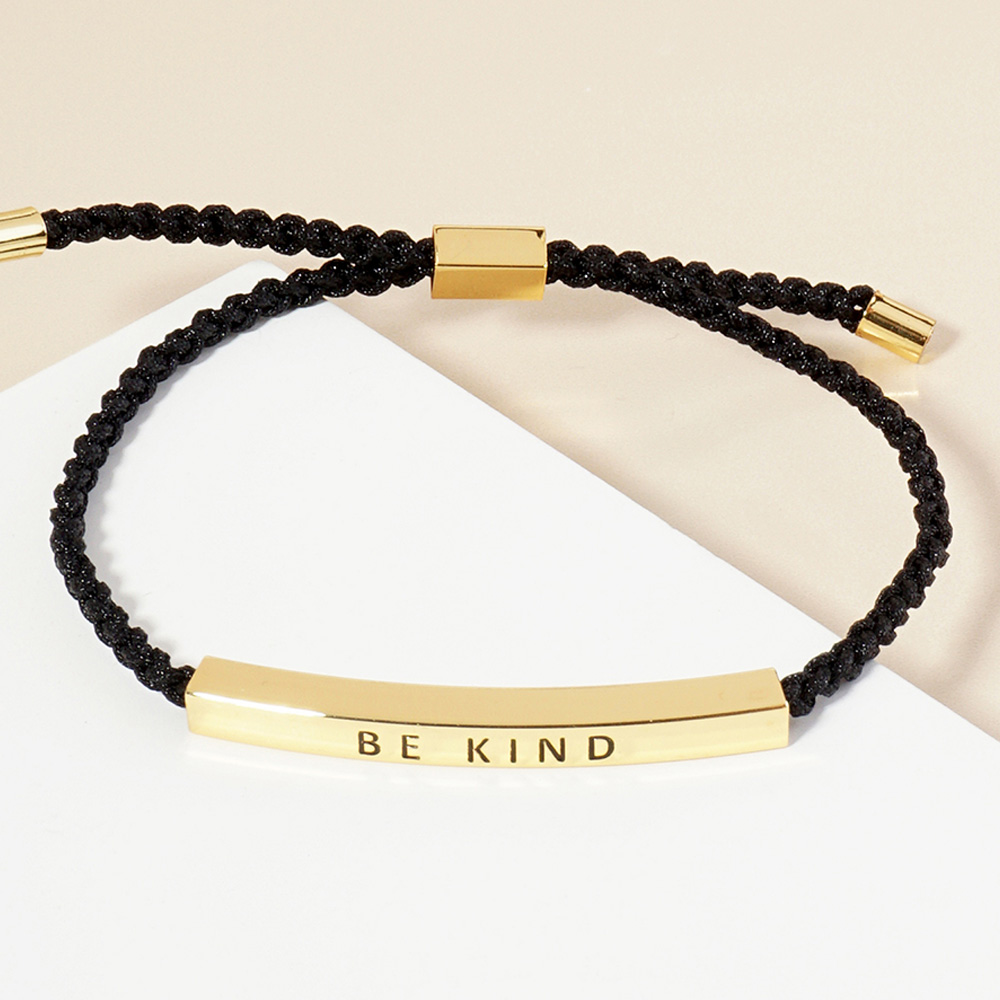 White Gold Dipped BE KIND Message Bar Pointed Rope Adjustable Bracelet
