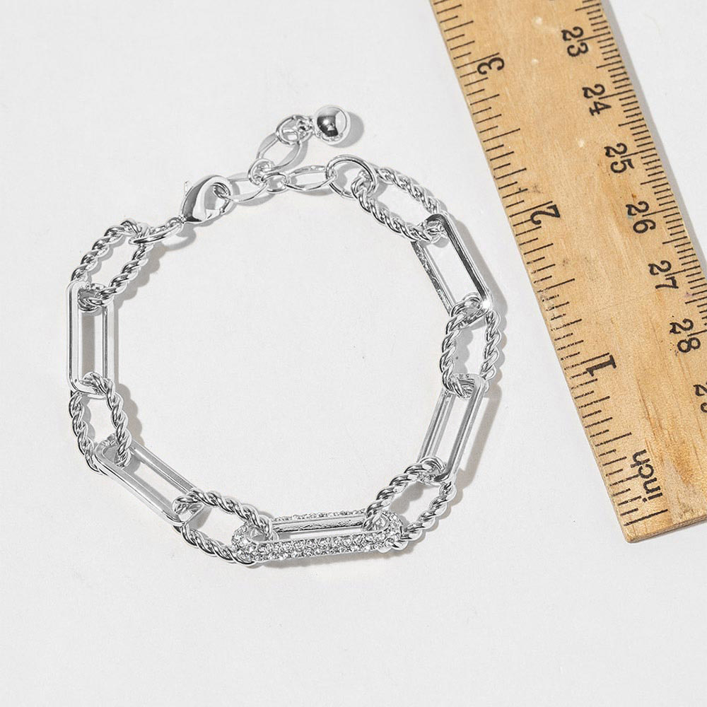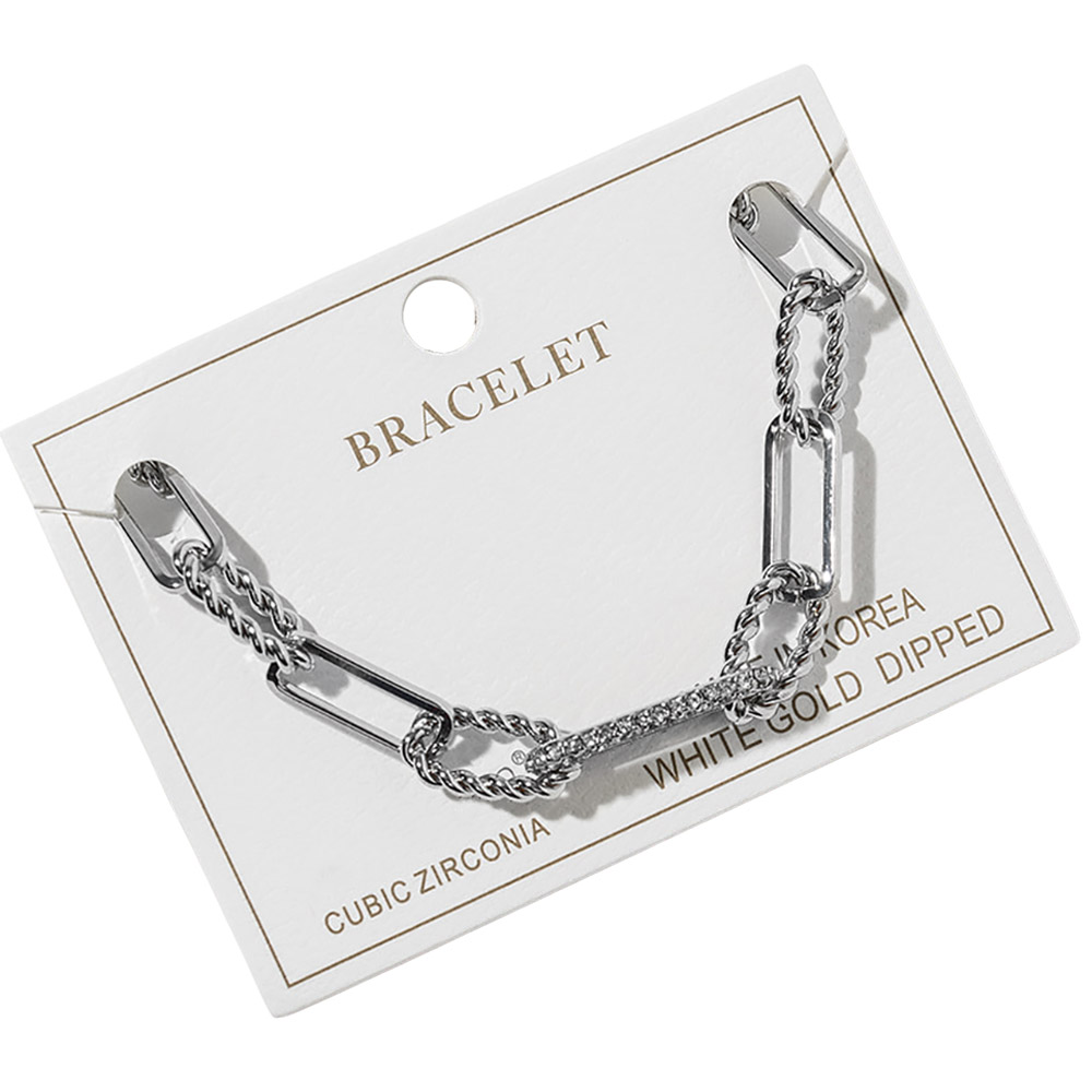 • Statement link bracelet featuring twisted chain details and a sleek bar accent with sparkling cubic zirconia. Designed for everyday wear or special occasions, this bracelet adds a refined, modern touch to layered looks and makes a versatile choice for boutique and gift collections.