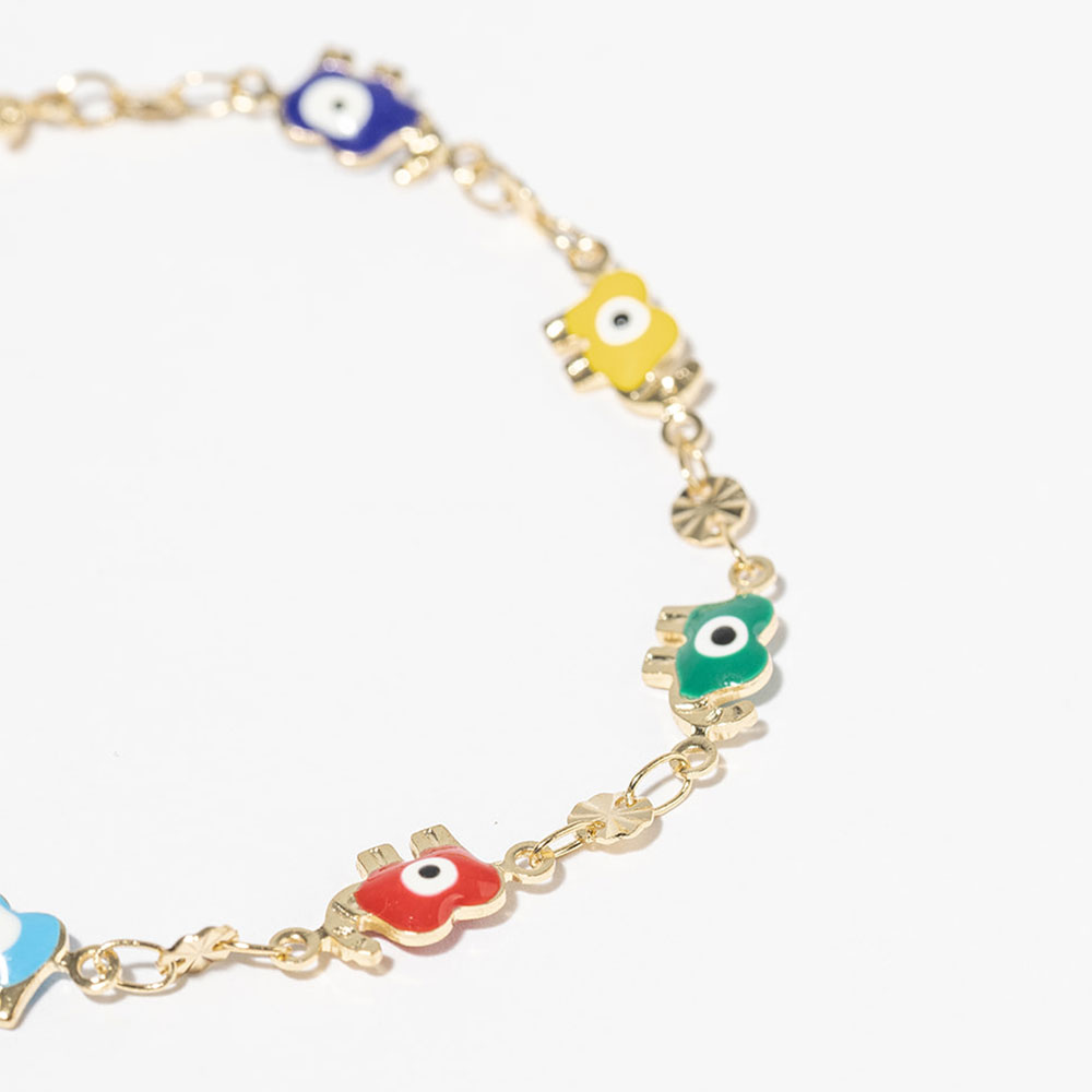 Gold Dipped Elephant Evil Eye Bead Link Bracelet