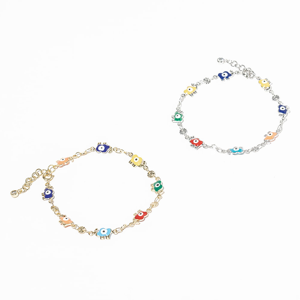• Embrace charm and protection with this elegant elephant bracelet featuring evil eye accents. Its intricate design symbolizes luck and positivity, making it a meaningful accessory to complement any outfit or a thoughtful gift for loved ones.