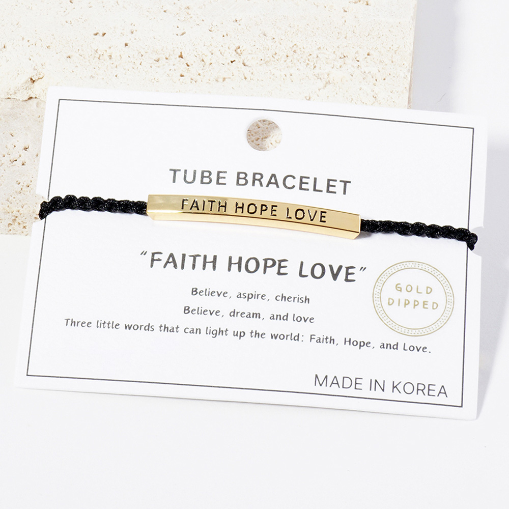 White Gold Dipped FAITH HOPE LOVE Message Bar Pointed Rope Adjustable Cinch Pull Tie Bracelet