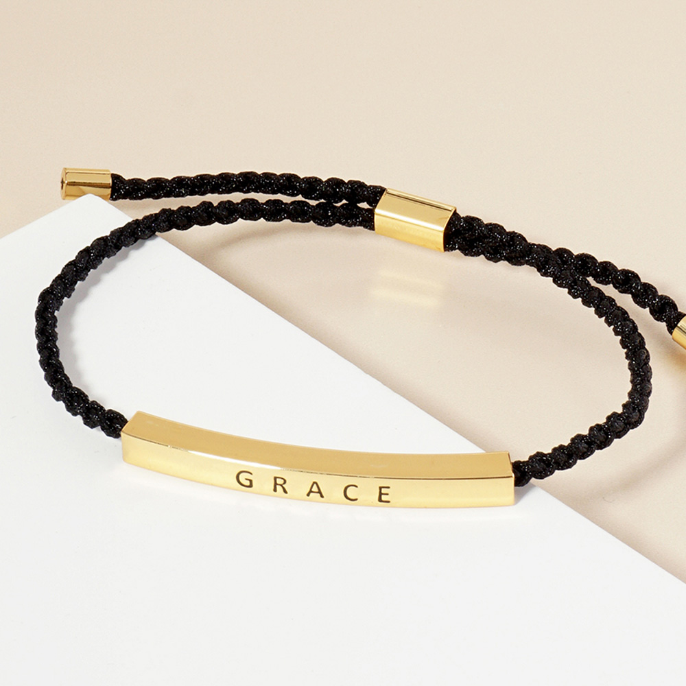 White Gold Dipped GRACE Message Bar Pointed Rope Adjustable Cinch Pull Tie Bracelet