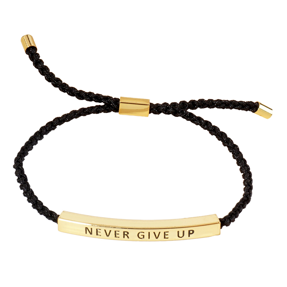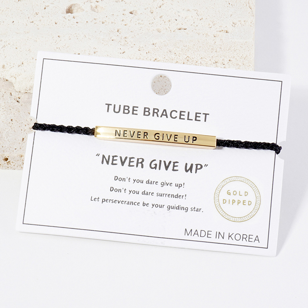Gold Dipped BRAVE Message Bar Pointed Rope Adjustable Cinch Pull Tie Bracelet