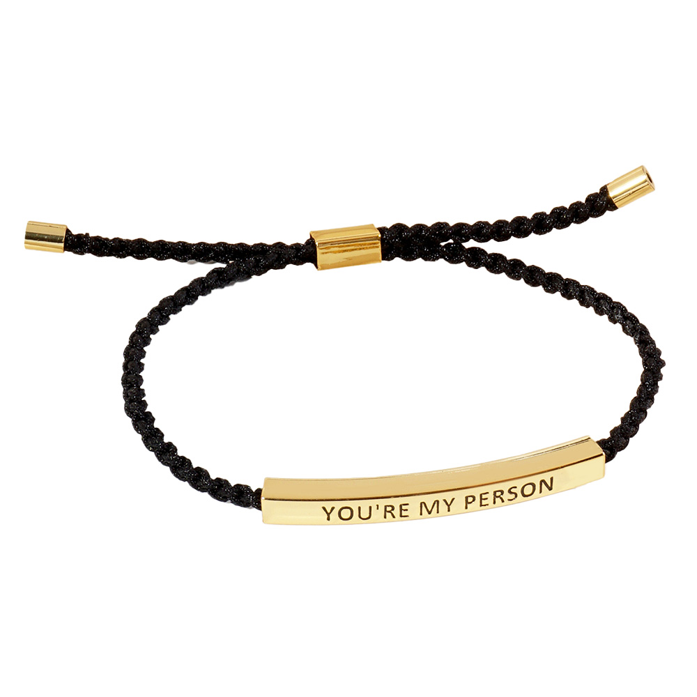 White Gold Dipped MY PESRSON Message Bar Pointed Rope Adjustable Bracelet