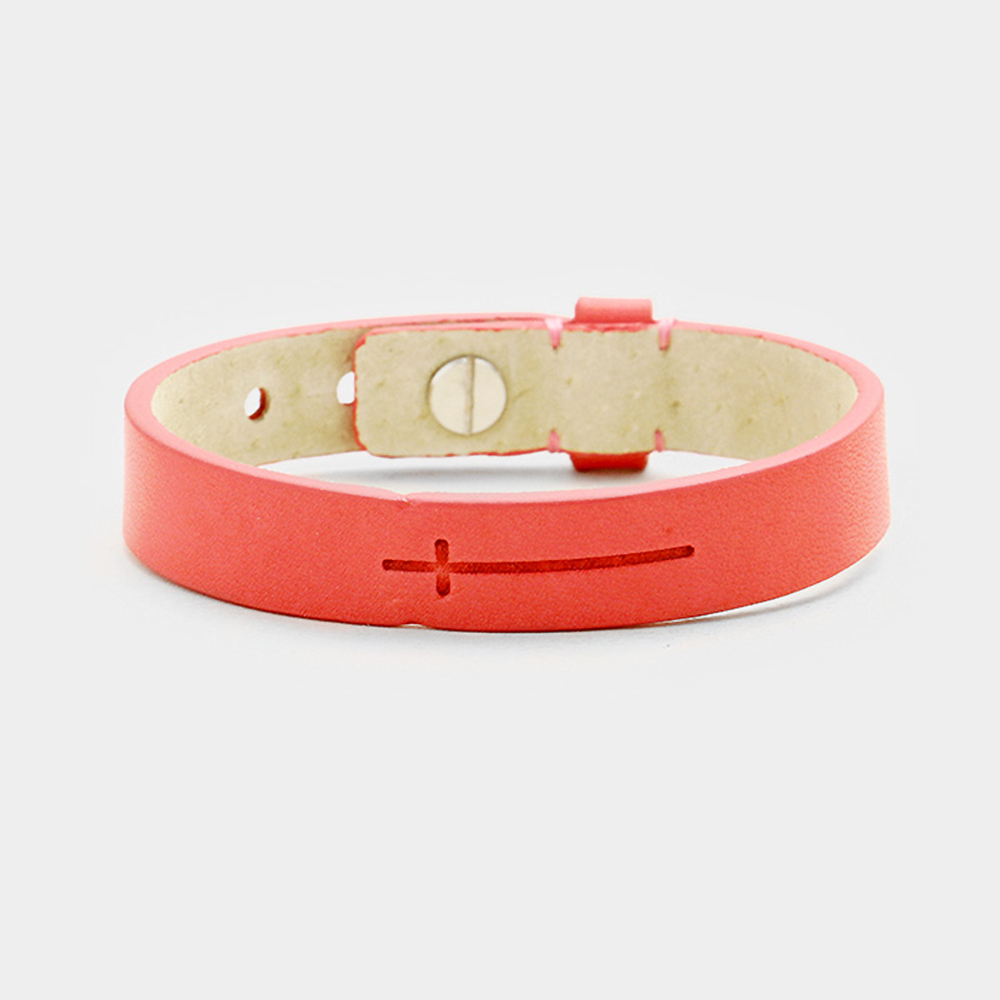 Leather Engraved Cross Belt Bracelet