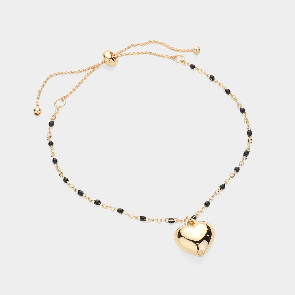 Metal Heart Charm Beads Station Pull Tie Bracelet