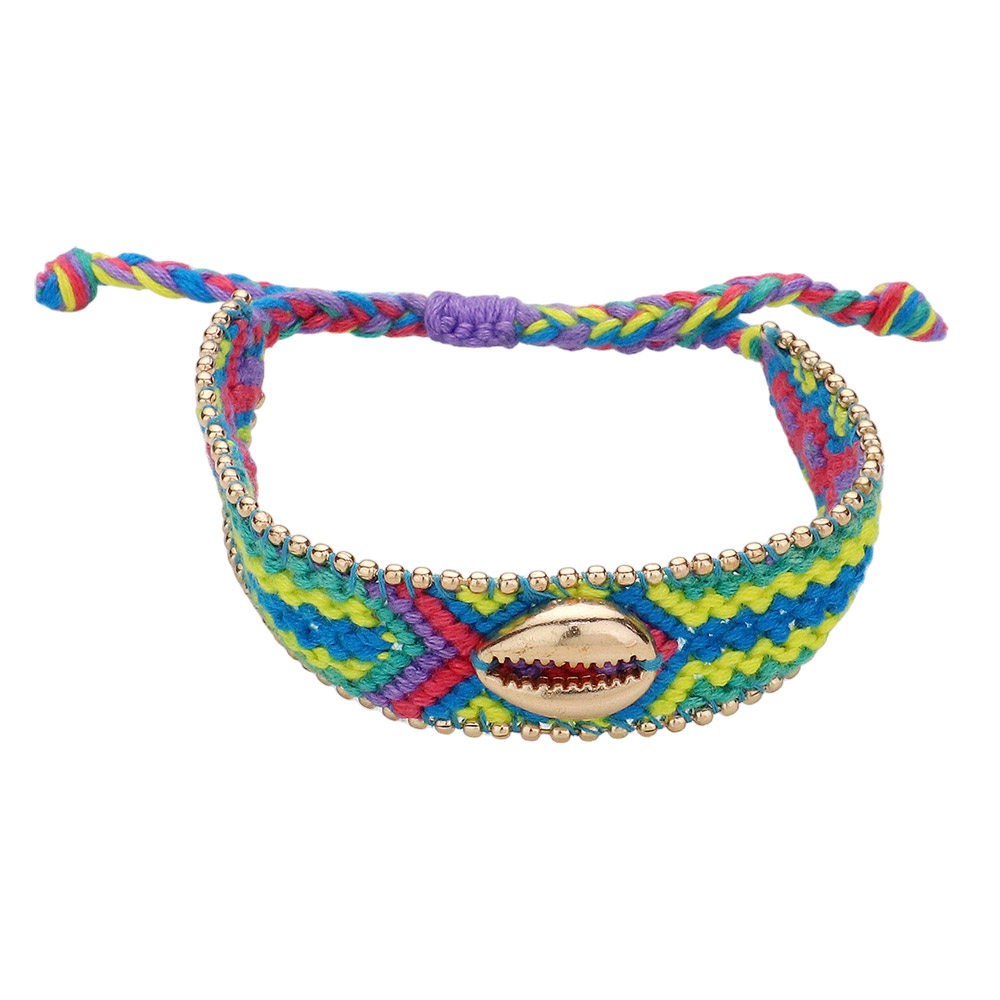 • Bring a touch of boho charm to your look with this woven friendship bracelet featuring an intricate pattern and a central shell accent. Its adjustable fit and vibrant style make it a perfect everyday accessory for relaxed, playful, and effortlessly chic outfits.