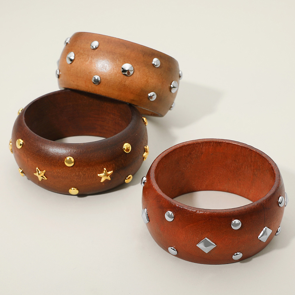 Metal Stud Embellished Wide Wooden Bangle Bracelet Metal Stud Embellished Wide Wooden Bangle Bracelet Metal Stud Embellished Wide Wooden Bangle Bracelet