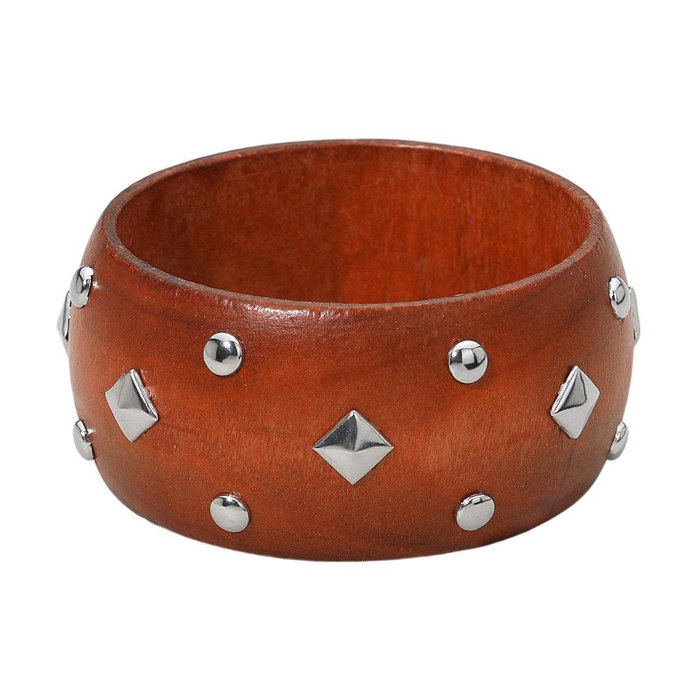 Metal Stud Embellished Wide Wooden Bangle Bracelet