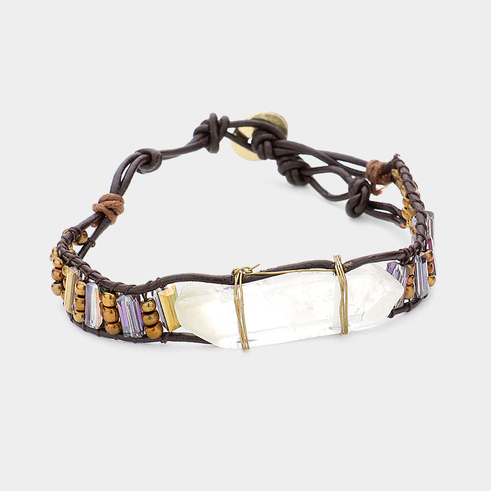Natural Stone Beaded Faux Leather Bracelet