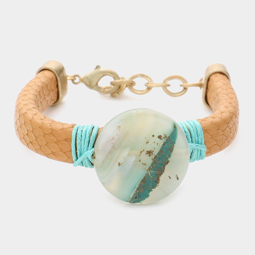 Faceted Beaded Pointed Raffia Wrapped Open Circle Dangle Earrings