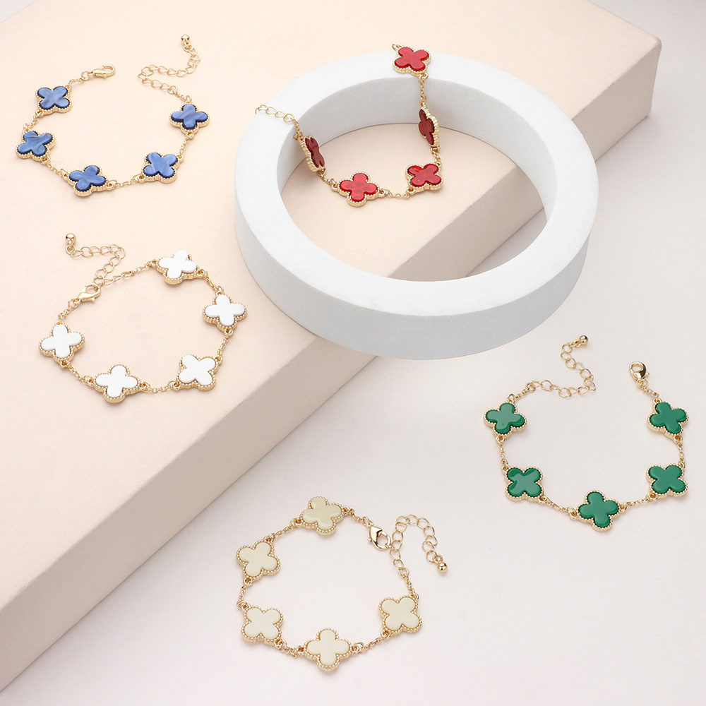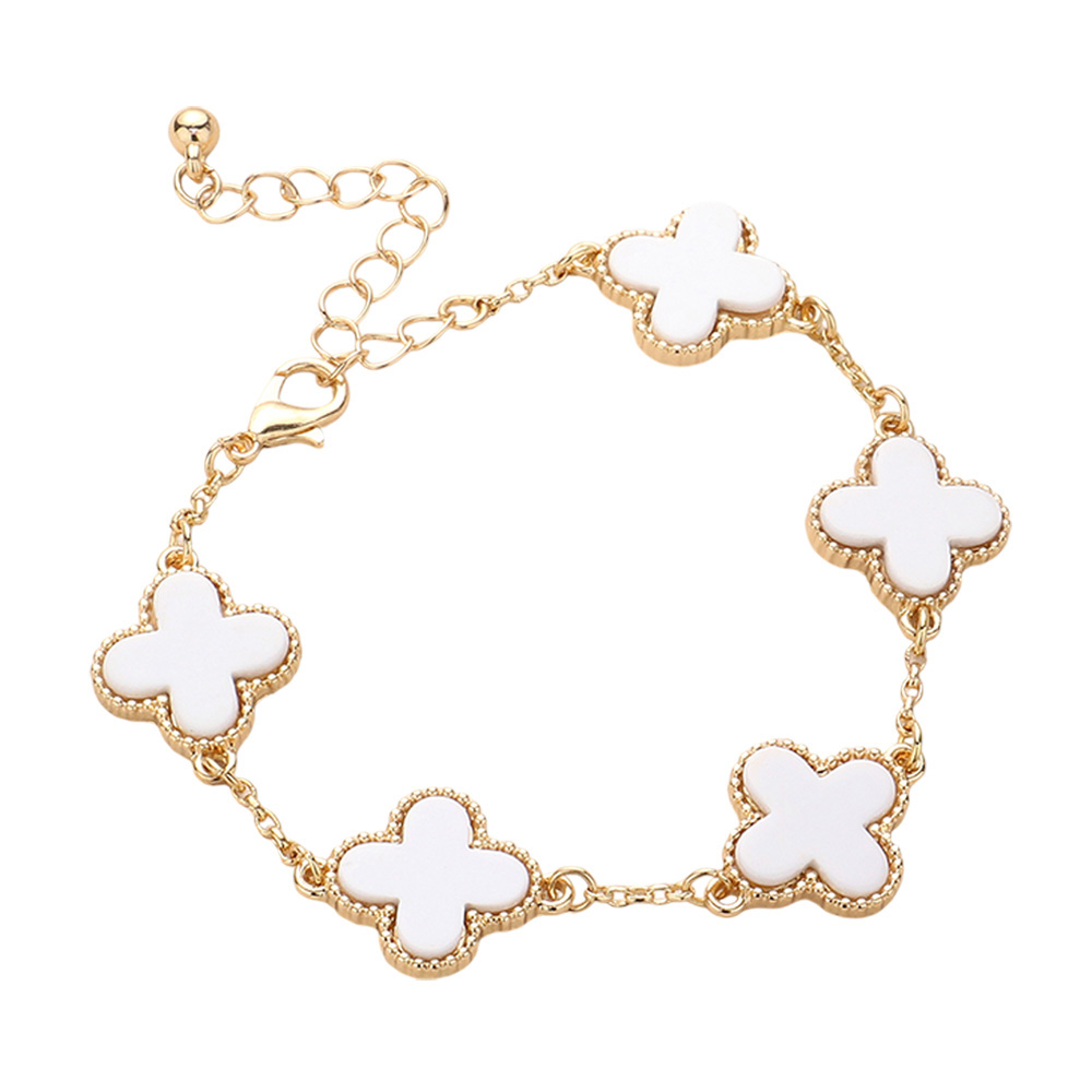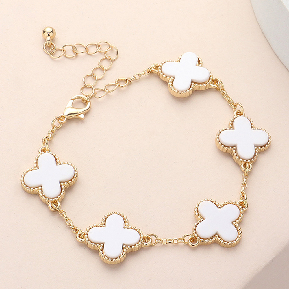 3PCS - Semi Precious Quatrefoil Metal Band Mixed Rings