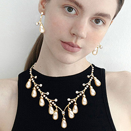 Teardrop Pearl Accented Rhinestone Petal Necklace