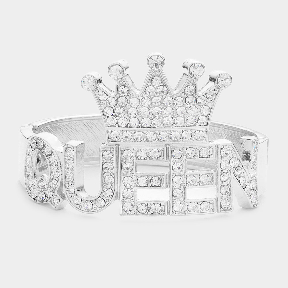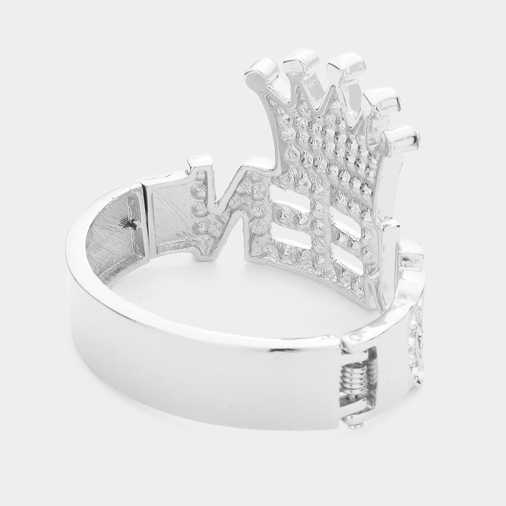 QUEEN Rhinestone Embellished Crown Hinged Bracelet