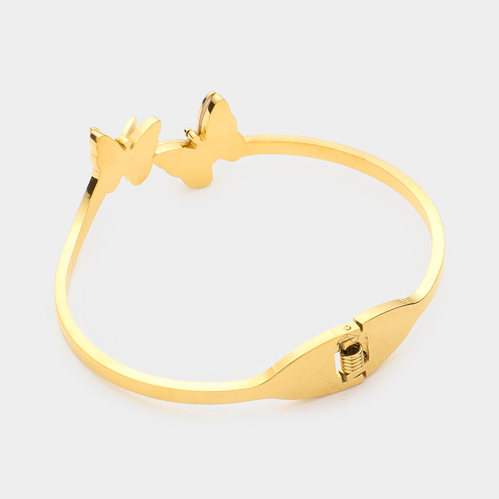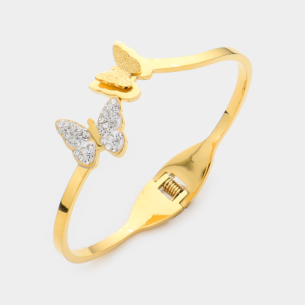 Rhinestone Embellished Butterfly Hinged Bangle Bracelet