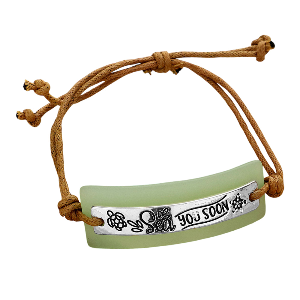 Sea you SOON Sea Glass Message Adjustable Pull Tie Cinch Bracelet