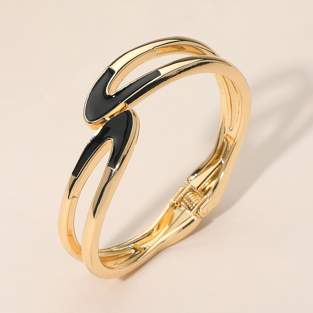 Details • Size : 0.8" H, 2.4" D • Hinged Closure • Elevate your accessories with this modern enamel cuff bracelet featuring a sleek open design and bold detailing. Perfect for adding a chic statement to casual or evening outfits, this bracelet blends contemporary style with timeless elegance for versatile wear.