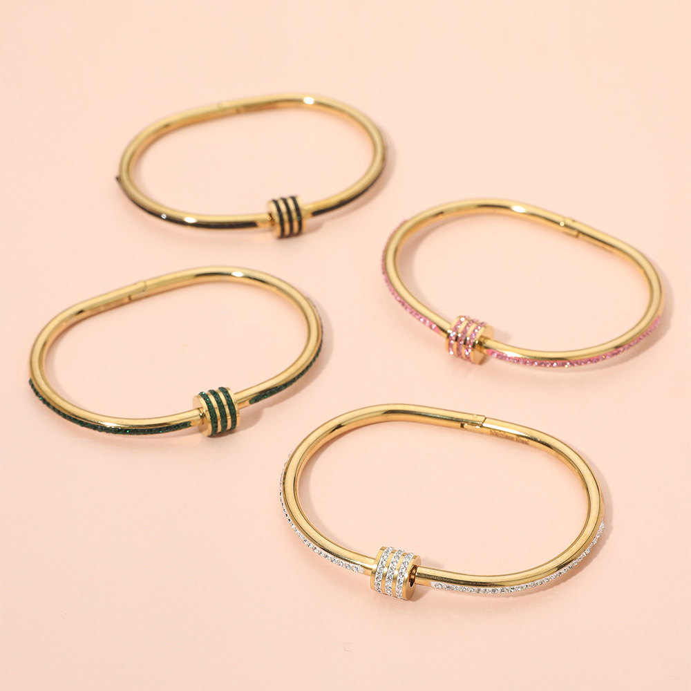 Details • Size : 0.4" H, 2.4" D • Hinged Closure • Modern open hinged bracelet featuring a sleek silhouette and refined crystal detailing for subtle sparkle. Designed to layer effortlessly or wear solo, this versatile bracelet complements casual and elevated looks, making it a timeless choice for curated jewelry collections and gift-ready displays. • CZ Cubic Zirconia • Stainless Steel