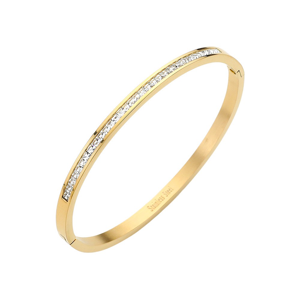 Stainless Steel CZ Stone Paved Hinged Bangle Bracelet