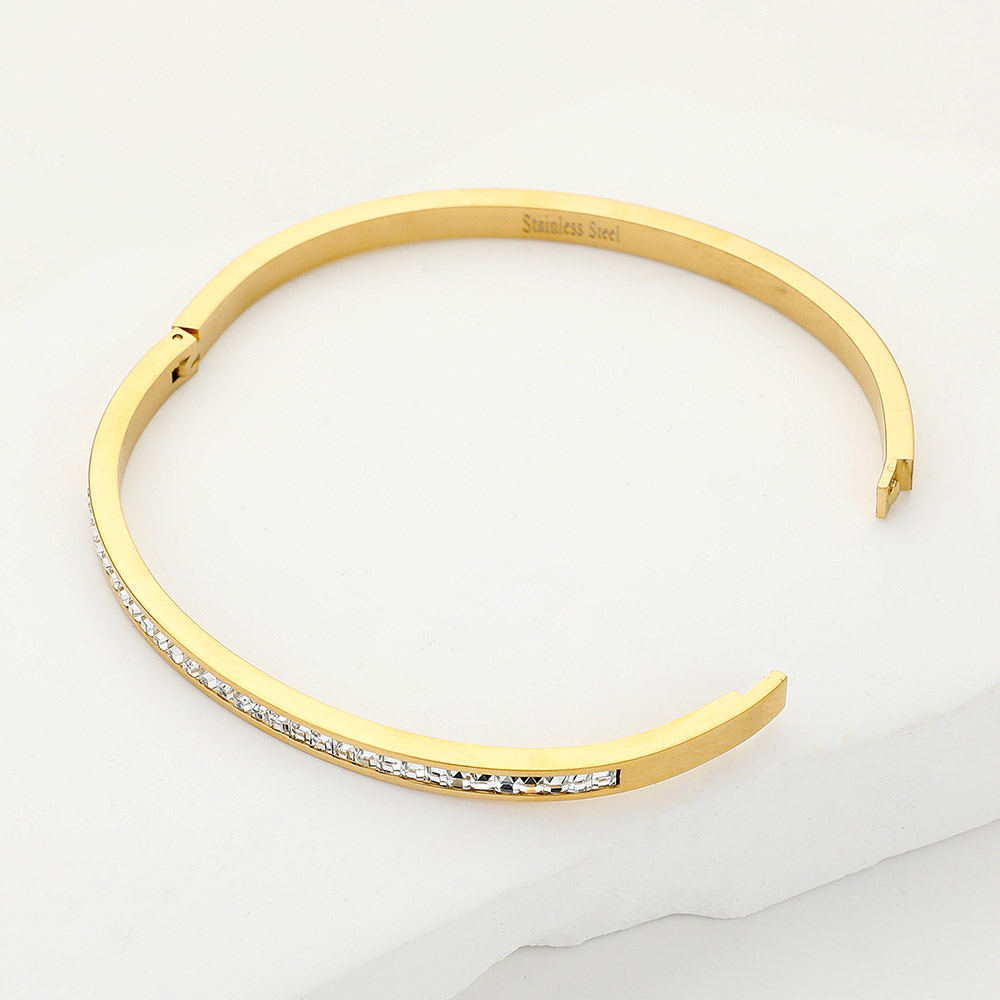 • Sleek bangle bracelet featuring a refined pavĂ©-style accent for subtle sparkle and modern elegance. Designed with a slim profile that layers effortlessly or stands alone as a minimalist statement, this bracelet offers versatile styling for everyday wear, special occasions, and curated boutique jewelry collections seeking timeless appeal.