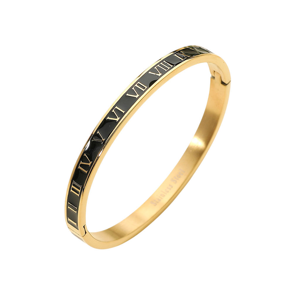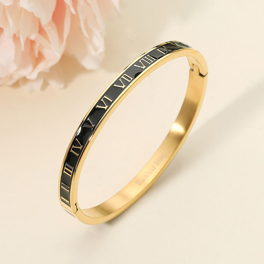 Stainless Steel Enamel Inlay Roman Numeral Hinged Bangle Bracelet