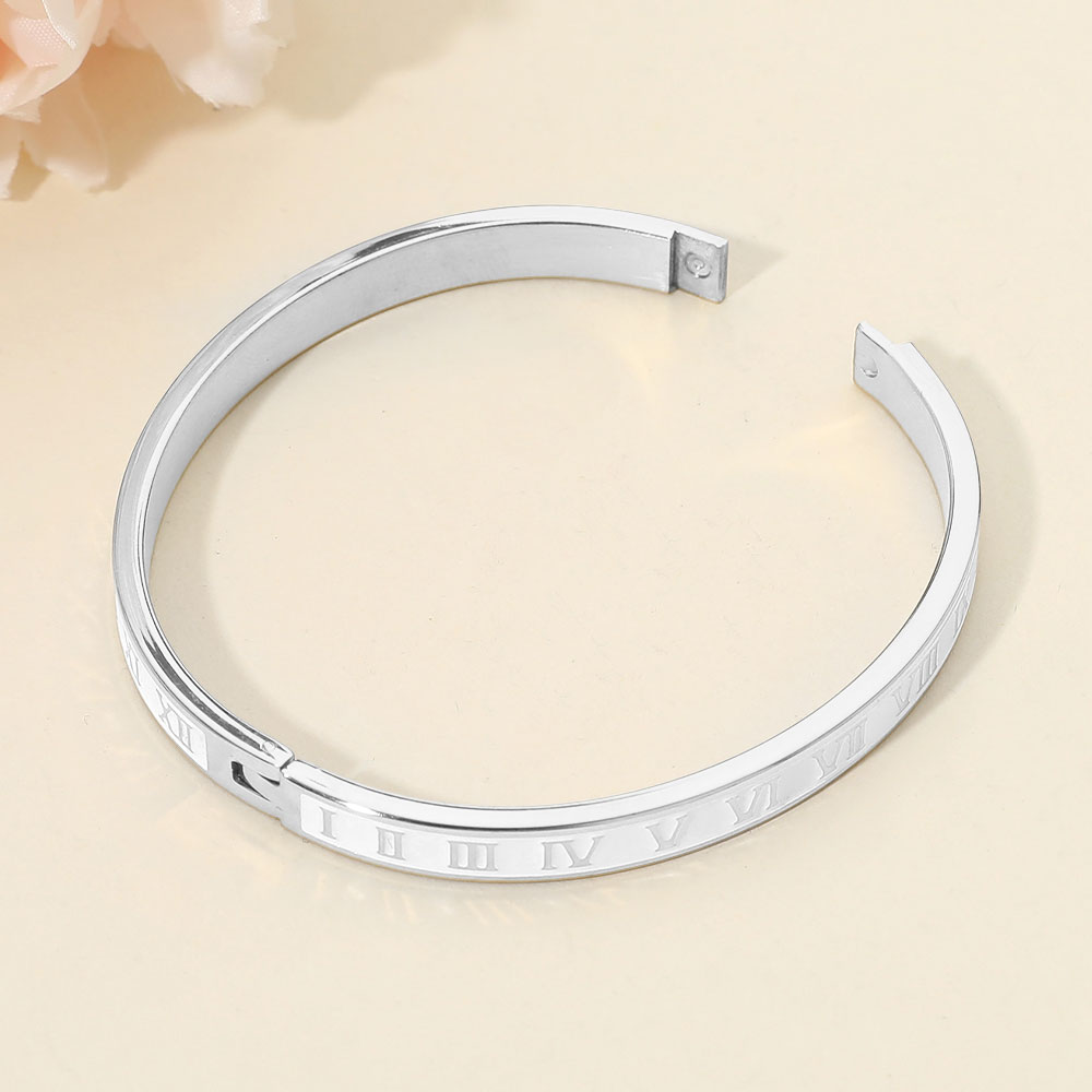 Stainless Steel Enamel Inlay Roman Numeral Hinged Bangle Bracelet