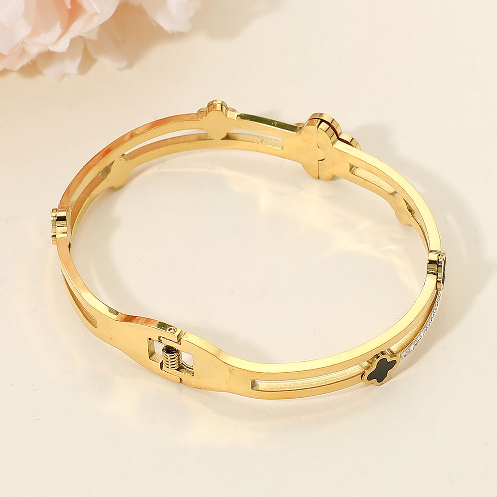 • Elegant hinged bangle bracelet featuring a refined quatrefoil-inspired design with delicate accent detailing for a timeless, polished look. Designed with a secure open-and-close hinge for easy wear and comfort. Ideal for everyday styling, gifting, and boutique jewelry collections seeking classic charm with modern appeal.
