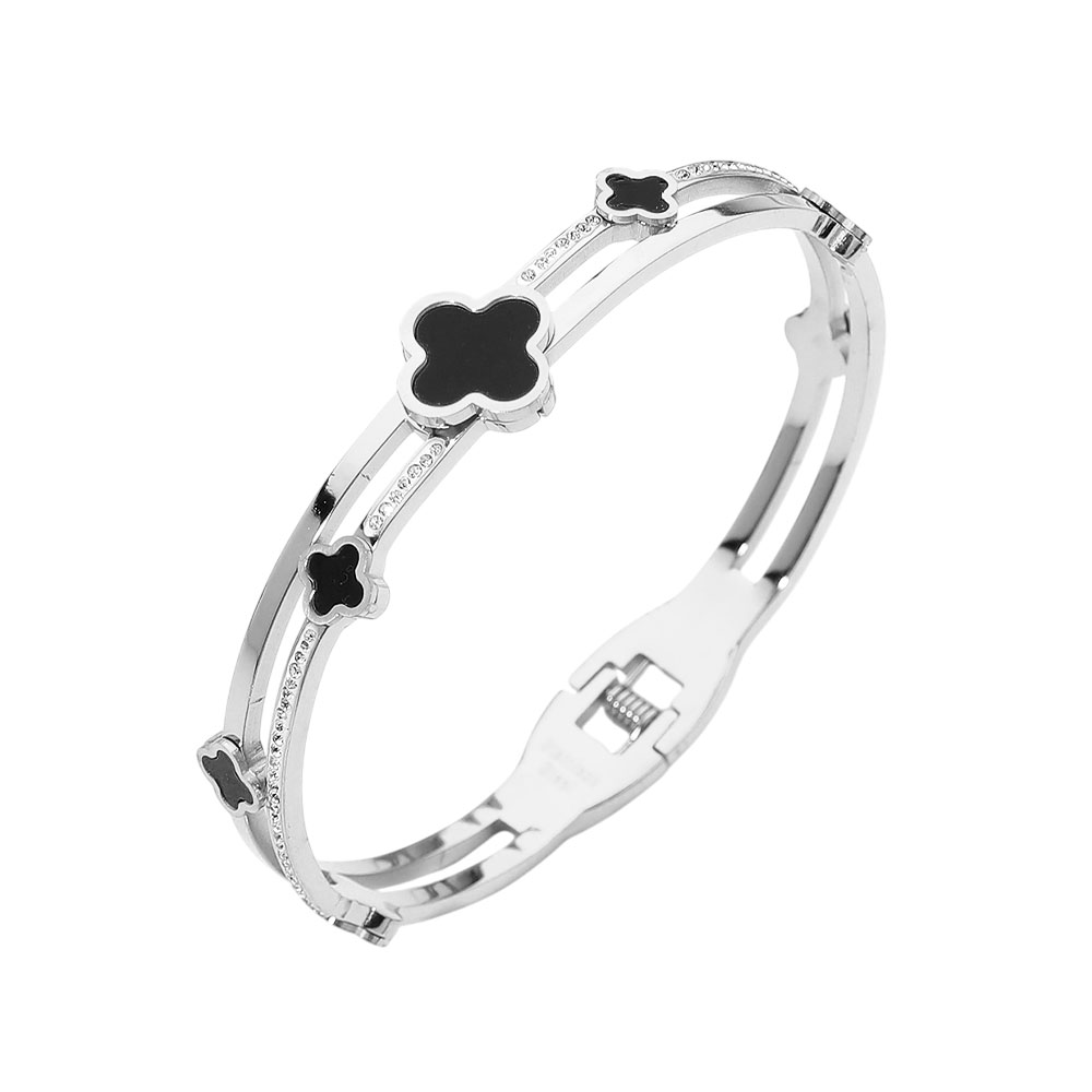 Stainless Steel Quatrefoil CZ Stone Split Hinged Bangle Bracelet Stainless Steel Quatrefoil CZ Stone Split Hinged Bangle Bracelet Stainless Steel Quatrefoil CZ Stone Split Hinged Bangle Bracelet