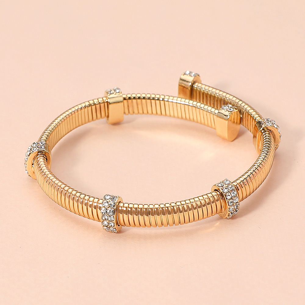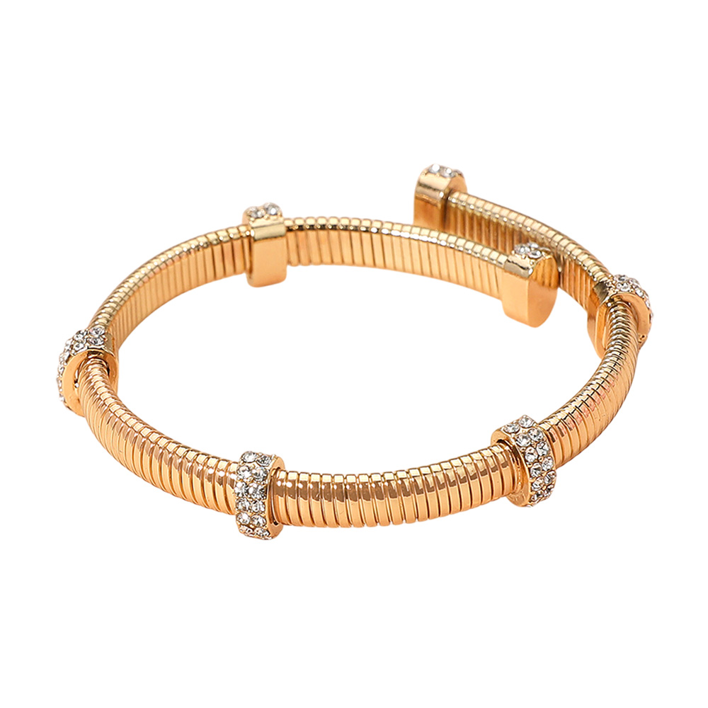 Stone Paved Bar Pointed Ribbed Metal Adjustable Bracelet