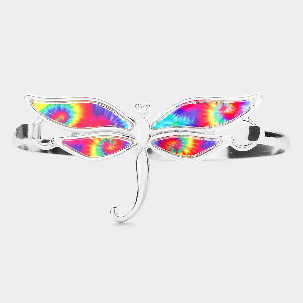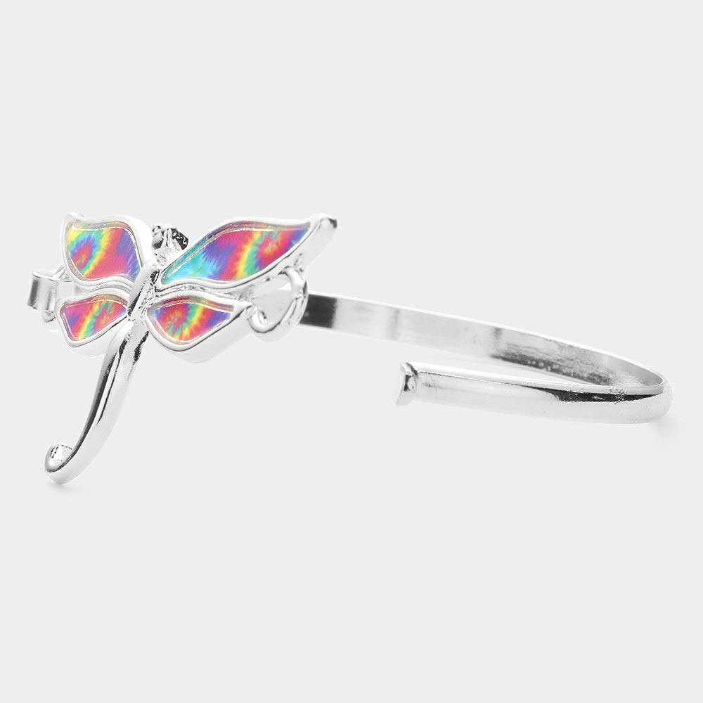 Crushed Colored Metal Flower Butterfly Link Dangle Earrings
