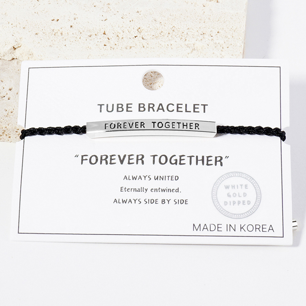 White Gold Dipped BRAVE Message Bar Pointed Rope Adjustable Cinch Pull Tie Bracelet