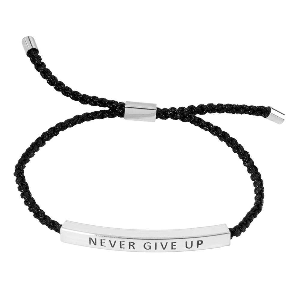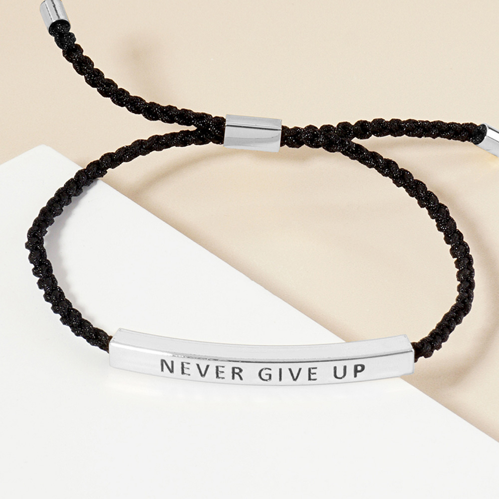 Gold Dipped NEVER GIVE UP Message Bar Pointed Rope Adjustable Cinch Pull Tie Bracelet