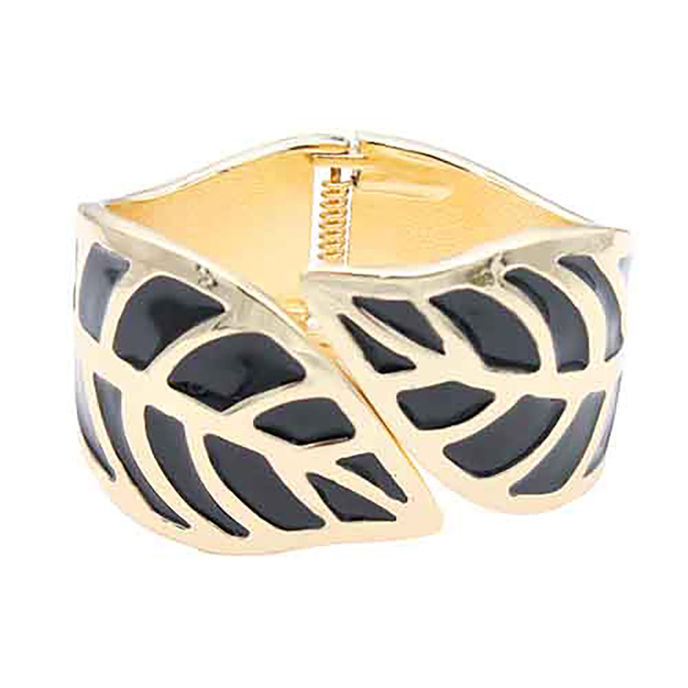 Wide Leaf Cutout Enamel Inlay Hinged Bangle Bracelet