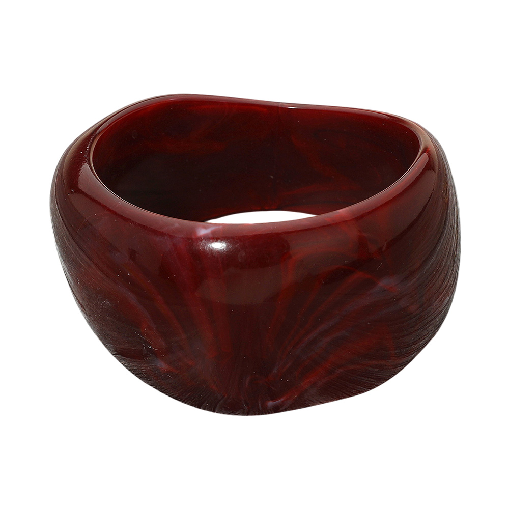 Details • Size : 2.1" H, 2.5" D • Add bold style to your accessories with this wide resin bangle, featuring a striking marbled swirl design. Perfect for making a statement, this versatile piece complements both casual and dressy outfits with artistic flair and contemporary appeal.