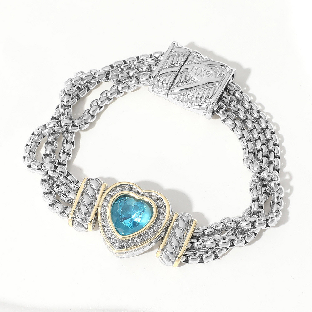 14K Gold Plated CZ Stone Paved Heart Pointed Magnetic Bracelet