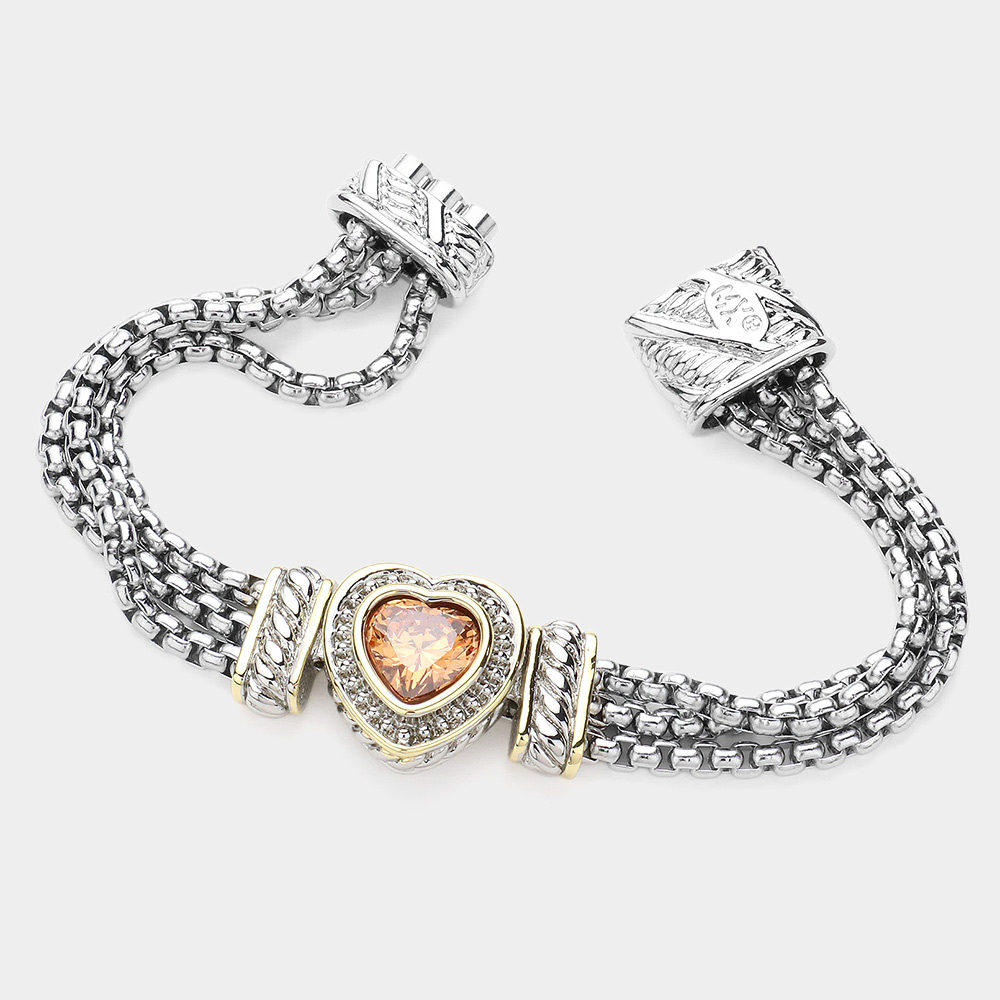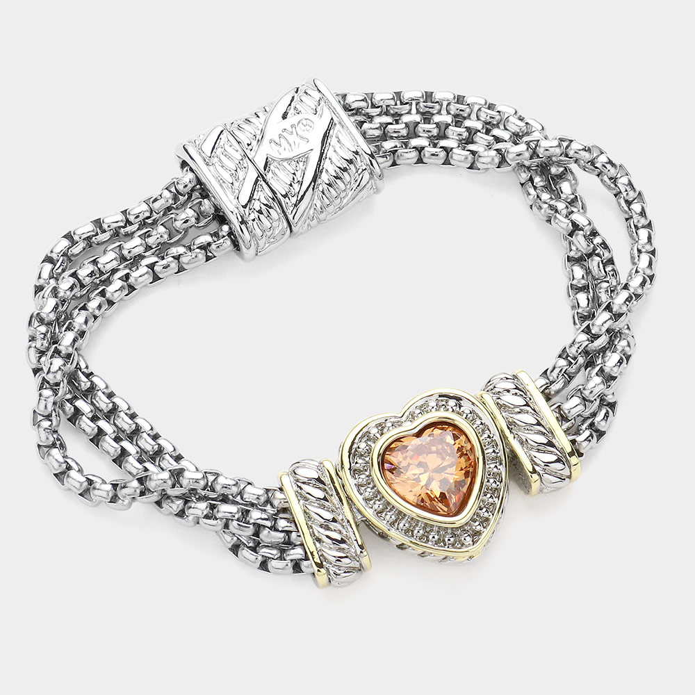 • Chic multi-strand bracelet with a heart-shaped centerpiece embellished with sparkling accents. Designed with a secure magnetic clasp, this elegant bracelet adds a stylish touch to everyday wear and special occasions.