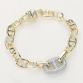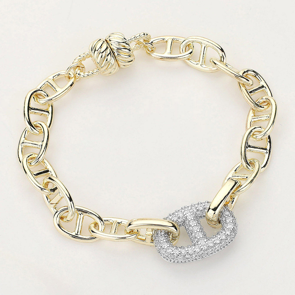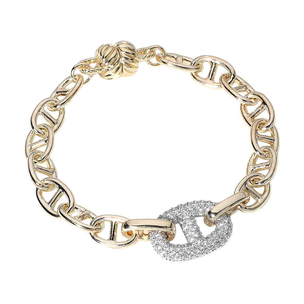 14K Gold Plated CZ Stone Paved Mariner Link Accented Magnetic Bracelet