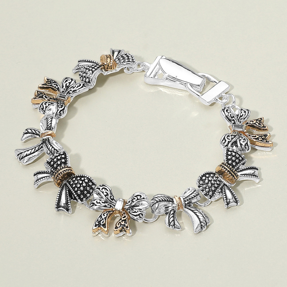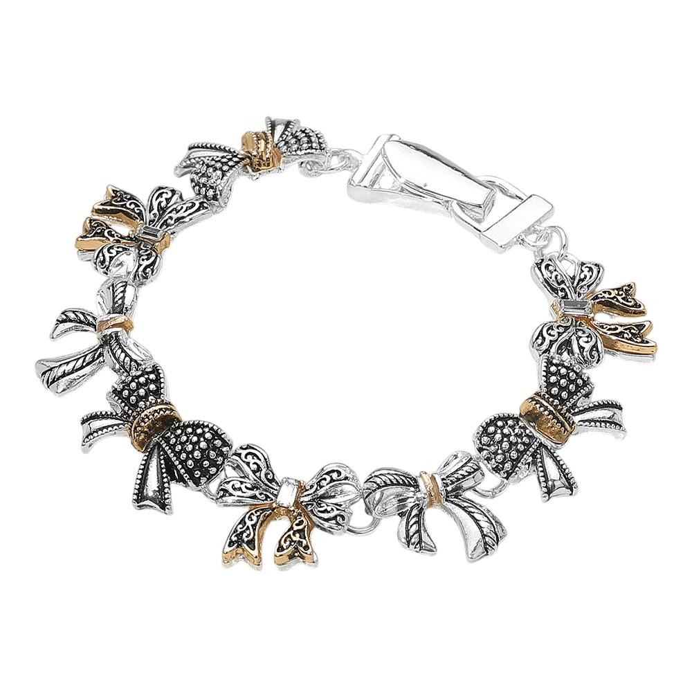 • Adorn your wrist with timeless elegance through this vintage bow charm bracelet, featuring intricate antique detailing and dual-tone accents. A graceful and feminine accessory that blends charm with sophistication, ideal for everyday wear or thoughtful gifting.